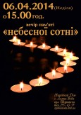 Відбудеться вечір пам’яті героям «небесної сотні»,які стояли на Майдані за Вкраїну. 02.04.2014